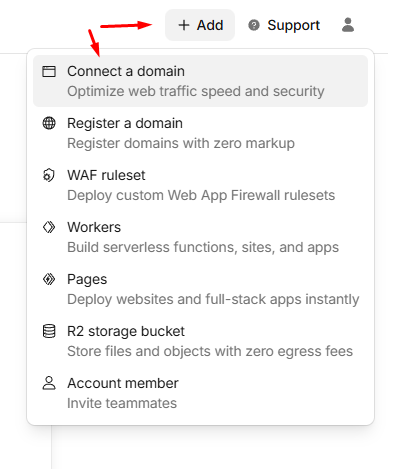 У меню, що випаде, оберіть пункт Connect a domain (Підключити домен), як показано на скріншоті нижче.