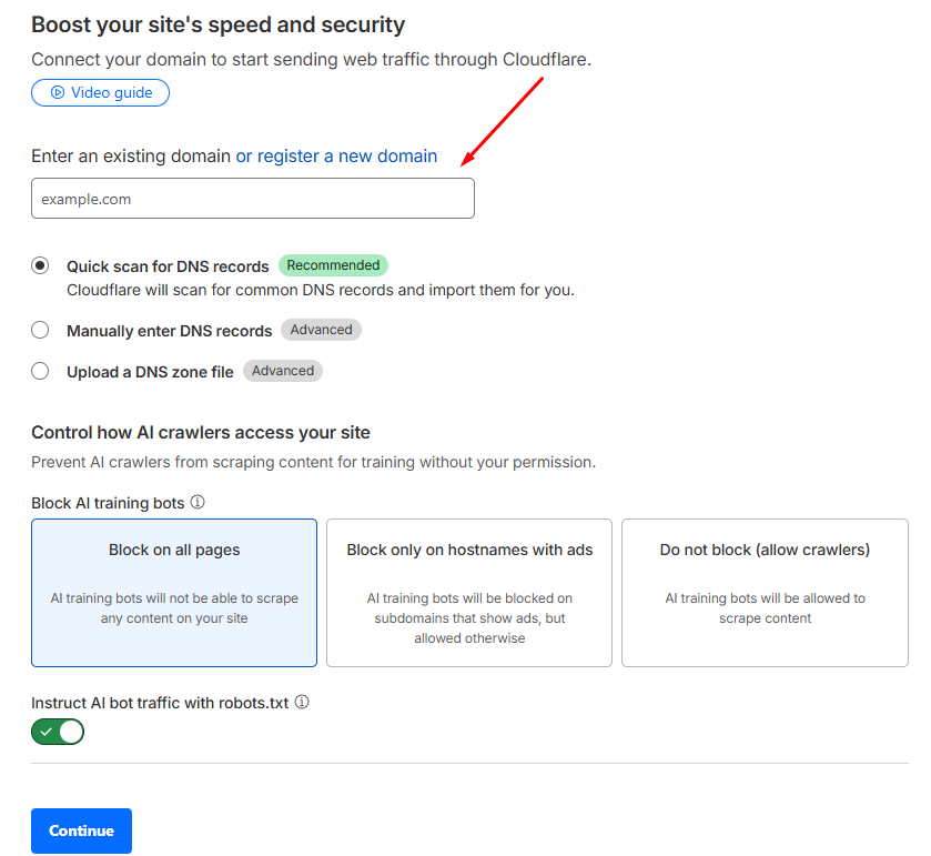 Cloudflare автоматично просканує ваш домен і знайде поточні налаштування. Не лякайтеся таблиці з даними — нам потрібно змінити лише один параметр.