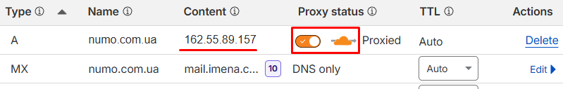 162.55.89.157Proxy status: Має бути увімкнено (помаранчева хмарка